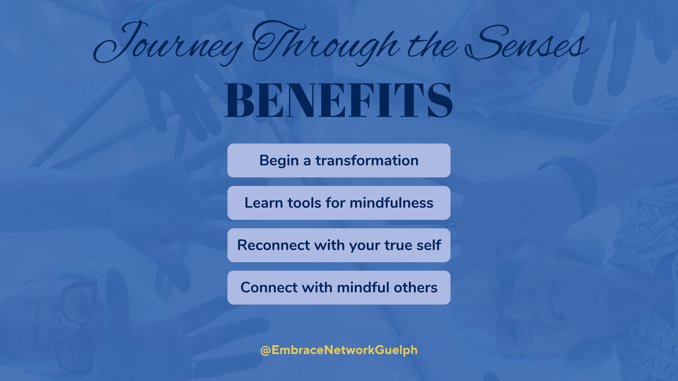 Welcome to your Journey Through the Senses, an interactive workshop where we learn to incorporate mindful tools to reconnect you with yourself through an exploration of your senses.
